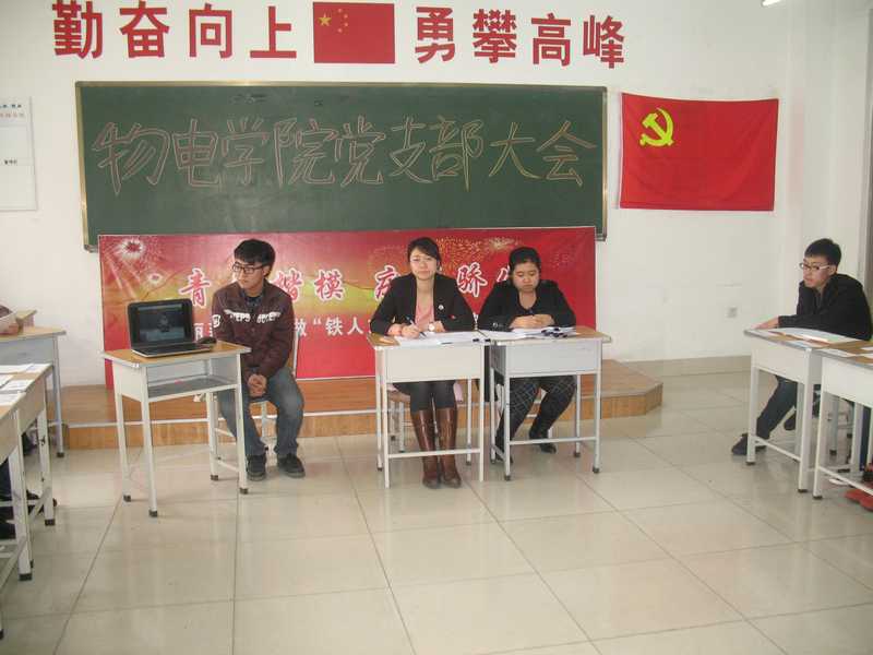 2013年4月10日,学生党支部召开支部大会,议题是讨论接收焦彦君、李明浩、吴昊、李洋洋、于静、曹博智、孙鹏、翟梓欣、曹诗雨、李德春、张娟娟、史珈毓、解二娟13名同志的预备党员转正问题,其中李洋洋、于静、曹博智、翟梓欣、吴昊5名大四同学由于在外地工作不能亲自到场,支部进行了远程视频,5名同学都通过网络参会。