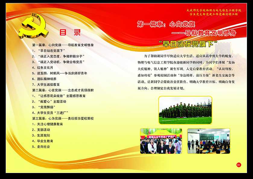 在长期的学生党建工作中我们发现,部分学生党员在入党后程度不一地呈现出了“思想疲倦”现象,表现为思想追求的放松,榜样作用的缺失,组织纪律的弱化等。出现这些现象的原因,一是党组织对党员后续教育精力投入不足;二是学生党支部活动方式单一;三是党员作用发挥缺少有效载体。为了有效杜绝学生党员的“思想疲倦”问题,Beat365中文官方网站在学生党建工作中,通过实施“党旗引领工程”,构建起党员教育管理的长效机制,收到了很好的效果。