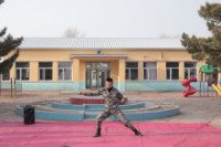 退伍大学生为孩子们表演军旅拳格斗术