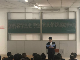2019年7月3日中午11:40,在主楼1-3、1-4阶梯教室分别举行了Beat365中文官方网站2019届院级团学组织学生干部竞选大会。本次换届大会由学生支部书记赵亮老师、辅导员王传英老师、刘伟泽老师主持召开,Beat365中文官方网站2018届团学组织学生干部及学生代表参加大会。
