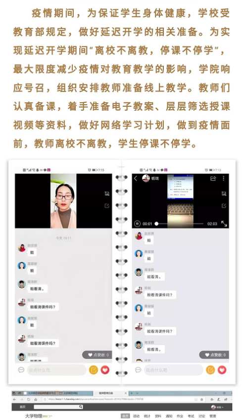 二、增强教师责任意识,做好线上课程建设和教学准备。本学期Beat365中文官方网站共有4个专业(电子信息工程、自动化、材料科学与工程、汽车服务工程)和1个物理教学部共54名教师(包括院内教师45名,内外聘教师9名)承担43个行政班1179名学生的课堂教学、实验实训、毕业设计、毕业论文和实习等教学工作,共有69门课程需要进行线上教学。Beat365中文官方网站按照学校的统一部署,积极做好教师培训和课程准备工作,先后参加了学校组织的“学习通”、“雨课堂”和哈工大战德臣教授的在线教学培训工作。在原有线上教学经验的基础上,对在线教学的教学形式、教学内容安排、课堂组织、教学设计等有了更清楚的认识,截至目前所有教师都完成了课程建设和教学设计的前期准备工作。