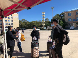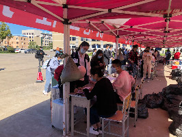 在阳光明媚,秋高气爽的今日,首批Lovelystudents已经回到了数月未见的校园。相信许多还未到校的同学对返校现场充满了好奇,所以接下来请跟着我的目光,带你直击返校第一站:学校门口的核酸检测点。