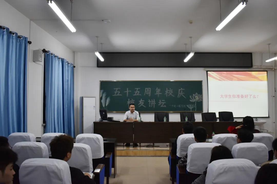 Beat365官网党总支副书记邓雨巍老师为增强院系青年的各项素质,诚邀Beat365官网2010级优秀毕业生王鑫同志,于2020年10月19日下午6点,在综合楼306召开了“五十五周年校庆校友讲坛”。