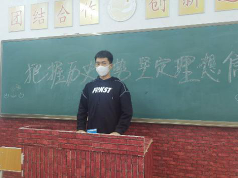 班会上,会议负责人强调说:“党的百年,正是它风华正茂之时,又恰逢“十四五”的开局之年,中国正站在两个“一百年”的历史交汇点,我们国家即将开启全面建设社会主义现代化的新征程。”学生们理应适时了解国史、党史,为今后现代化强国的建设发展打牢基础。