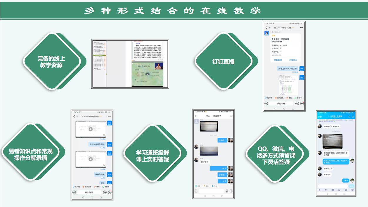 一是完备的线上教学资源,放置在学习通平台,其中包含基本教学文件和丰富的课程资源,覆盖了新课讲解、练习巩固、总结拓展的各个教学环节。课程相关的优秀课程资源,配合学习通群内的小组讨论和教师的问题解析,充盈和拓展课程内容,夯实学习目标。二是钉钉在线直播,精心教学设计,OBE教学理念贯穿始终,学生课程参与度高,教学效果好,课程目标课上达成度高。分享屏幕,演示maxplus的具体操作,并将直播内容录制,可供学生课下回放。教学过程中为调动学生的积极性,可就具体操作连麦学生,实时掌握学生的上课状态。三是录制重、难点微视频和易错题讲解视频,将一些典型的学生容易出错的知识点和常规操作录制成微视频,方便学生复习和巩固。四是学习通班级群课上实时答疑,学习通群内可以将学生提出的问题作为共性案例给学生们集体讲解。五是QQ、微信、电话多方式预留能够灵活课下答疑,可以做到手把手的远程操作,能更方便地解决学生们的具体问题。让学生以他方便的方式和老师沟通交流,力所能及地帮助和解决学生在学习、生活上遇到的困难,缓解焦虑,切实让思政工作走入课堂,实现课程思政化,全方位育人。