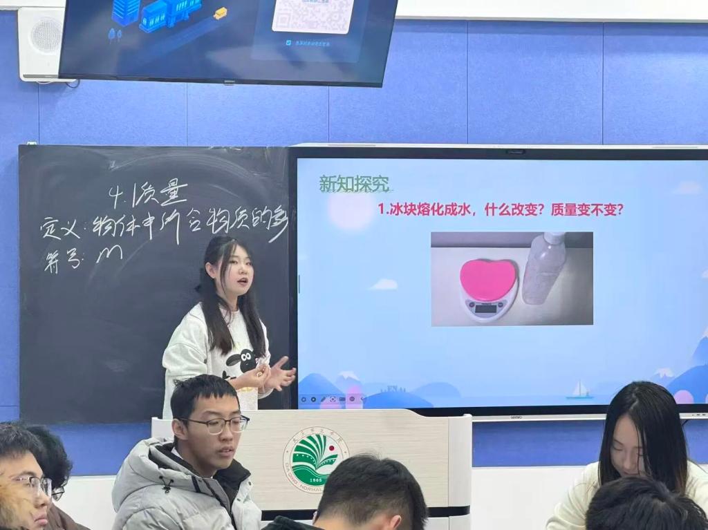 教学展示更是宝贵的财富,各实习队实习生代表分享了一场生动的教学示范,将抽象知识具象化的教学探索、巧妙的教学设计、精湛的课堂驾驭能力以及对物理思想的深刻诠释展现的淋漓尽致。实习过程中,老师和同学们相互听课、研讨、鼓励,在教学相长的良性互动中,共同筑成了师范生成长的坚实阶梯。