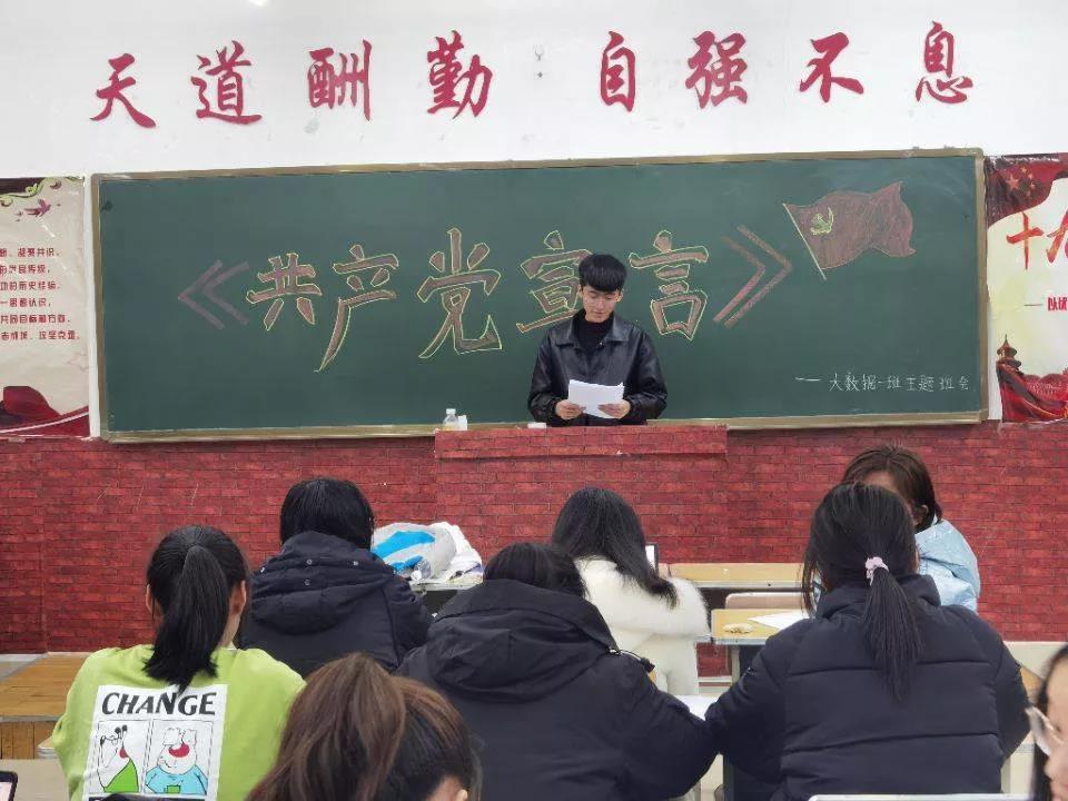 本次学习《党的十九届五中全会精神》活动由团总支全体成员共同规划。以班会的形式举行,通过阅读《共产党宣言》,观看电视剧《中国1921》中的精彩片段,进一步加深了同学们对党的历史的了解,让同学们知道作为当代大学生、团员、入党积极分子,必须要继承先辈的意志,不忘初心、牢记使命,争做新时代有为青年。