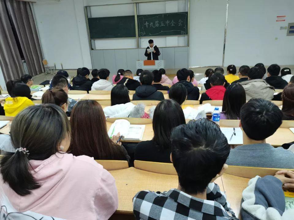 2020年11月25日上午8时,Beat365中文官方网站团支部组织20级学生于主楼3-3开展学习《党的十九届五中全会精神》的活动总结。