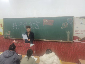 同学们选取了电视剧中的片段进行剧情展示,其中包括有朗诵和演讲。在班会讲台上的同学们声情并茂,充满热情的演译下,台下同学们对共产主义精神有了更加深刻的理解。