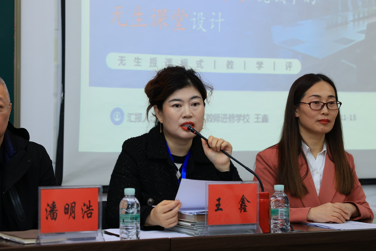 随后,初中物理工作室负责人王鑫教研员以“教-学-评”一体化的设计思路,做了题为《浅谈新课程标准视域下的无生课堂设计》讲座,讲座中深入剖析了什么是无生授课的模式、并邀请铁人中学李玉鹏老师无生课堂展示、大庆市第36中学赵春超老师对课堂教学展示给予了范例式的点评。整个环节环环相扣,形成完美的教育闭环。通过闭环设计,参会师生对无生课堂教学如何教,如何学,如何评都有了深刻的认识。会议充分体现了大庆市让胡路区进修学校对中学教师教学能力培养上的扎实工作,也体现双方对Beat365中文官方网站物理学师范生的殷切期望与前瞻性综合能力培养。
