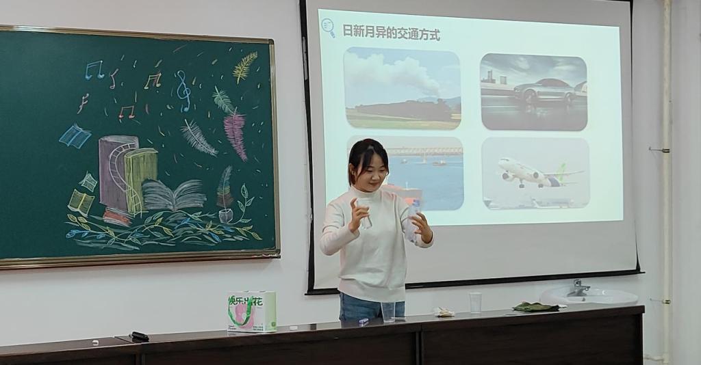 实习生代表金怀芳同学以《热机》这这节课为例进行无生课堂展示,她灵活的讲解、创新的实验演示、标准的教姿教态和恰到好处的提问技巧将中学物理课多种教学方法精彩纷呈的展现了出来,金怀芳同学的教学展示代表着2021级物理学专业学生学习成效的“冰山一角”。