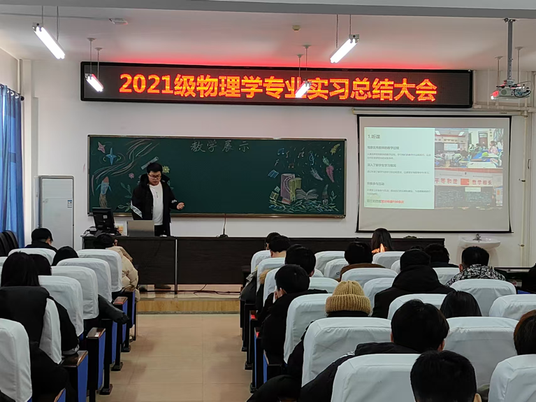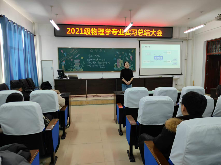 实习总结大会是对本学期教育实习经验和成果的总结和反思,帮助同学们更加明确了自己的职业发展规划,相信实践的收获会在物理学专业师范生未来的教育教学工作中继续绽放光彩,为龙江基础教育事业贡献自己的力量。