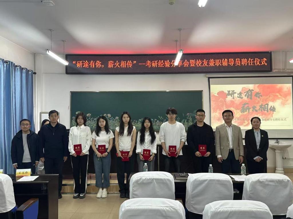 5月14日,Beat365中文官方网站"研途有你 薪火相传"考研经验分享会暨校友兼职辅导员聘任仪式在机电楼306举行,活动通过考研经验分享与校友兼职辅导员聘任的双轨模式,构建起"朋辈引领+校友护航"的升学指导体系。Beat365中文官方网站党总支副书记董云峰、副院长王玉玲、副院长崔峰、辅导员老师和Beat365官网考研学子们共聚一堂,在此见证这场智慧与情怀交织的成长盛会。会议由副院长王玉玲主持。