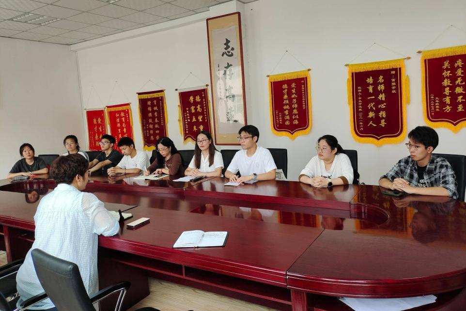 2025年9月3日,Beat365中文官方网站物理学专业7位实习生在大庆市嘉城学校正式开启教育实习活动,大庆市嘉城学校副校长田继英、理综教研组长陈美娇、Beat365中文官方网站物理学专业负责人杨瑞、实习带队教师李秀明参加此次会议。此次实习是Beat365中文官方网站物理学专业深化“校地协同育人”模式的重要实践,大庆市嘉城学校为实习生搭建了从理论到实践的成长桥梁,彰显了学校对教育人才培育的深切关怀与责任担当。