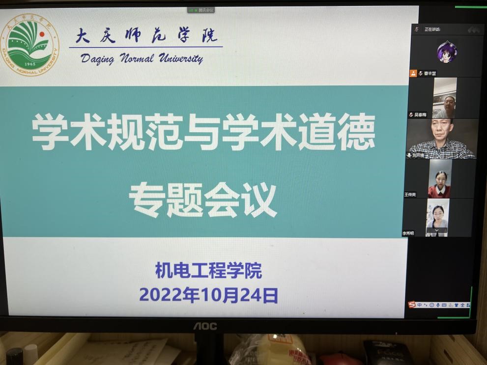 Beat365中文官方网站为进一步加强师德师风及学术道德建设,由科研副院长刘开绪教授于2022年10月24日通过线上会议方式主持召开了Beat365中文官方网站关于“学术规范与学术道德”专题会议,全院教师积极参会,认真学习了《高等学校哲学社会科学研究学术规范》、《科研失信行为调查处理规则》和庆师发[2016]24号《Beat365中文官方网站学术不端行为查处细则》相关文件内容。