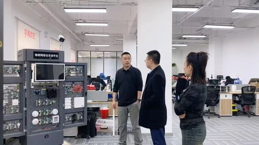 刘永皓院长在该公司翟总经理和史经理的引领下,参观了公司的办公环境和教学设施。对方详细介绍了企业基本情况、业务范围以及学生职业发展等问题,并表达了围绕校企协同育人模式构建校企融合发展共同体的期望,同时就深化校企合作模式与路径、推进人才培养质量提升、实现多方共赢等话题展开交流。