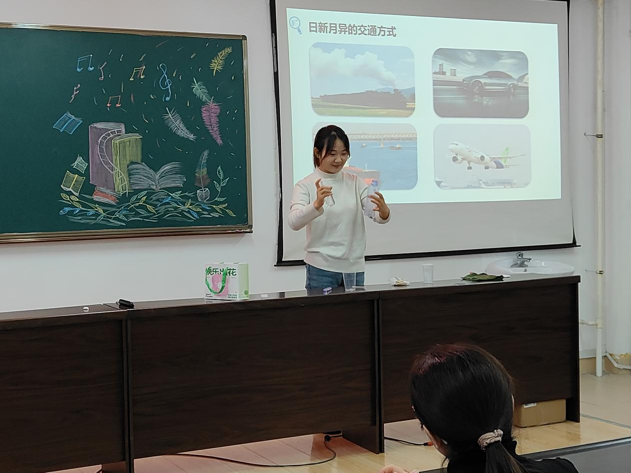 实习生代表金怀芳同学以《热机》这这节课为例进行无生课堂展示,她灵活的讲解、创新的实验演示、标准的教姿教态和恰到好处的提问技巧将中学物理课多种教学方法精彩纷呈的展现了出来,金怀芳同学的教学展示代表着2021级物理学专业学生学习成效的“冰山一角”。