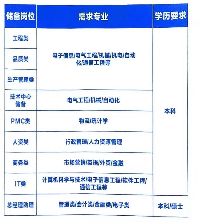 包括研发技术类、供应链及制造类、职能类及营销类等各序列岗位,涵盖绝大部分一级学科,涉及计算机、软件、数学、电子信息、通信、机械、制冷、暖通、材料、经济、管理、财务、营销、法律、小语种、师范类专业等各类专业。