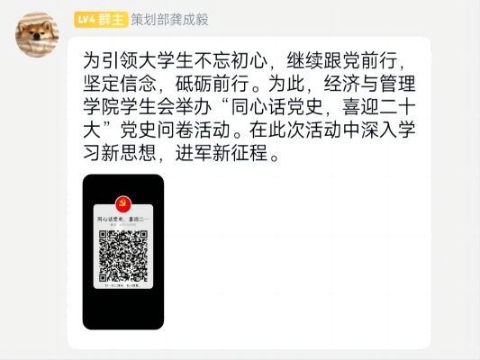 为了迎接党的二十大胜利召开,引领同学们了解党史、认识党史,学习党的奋斗历程,牢记党的宗旨,坚定跟党走。2022年10月5日,9227新葡的京集团学生会举办“同心话党史,喜迎二十大”线上答题活动。