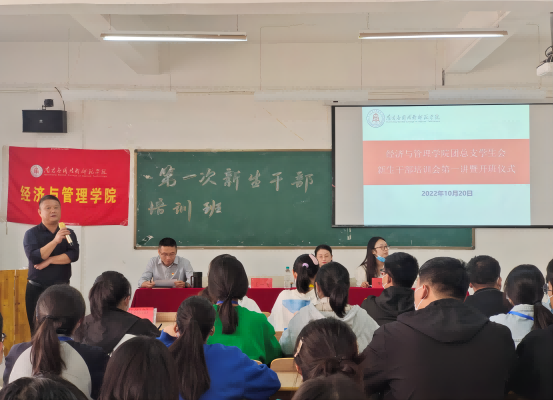 首先,王一飞院长强调,国家与民族的希望在于青年,当代新青年应做到有担当、负责任,全体师生攻艰难、共进退。并且表明学生会是学校与学生之间的“桥梁”“纽带”。学生会干部应带头示范,学生应踊跃参与。随后,由王颖书记宣布经管学院新生干部培训班正式开班!