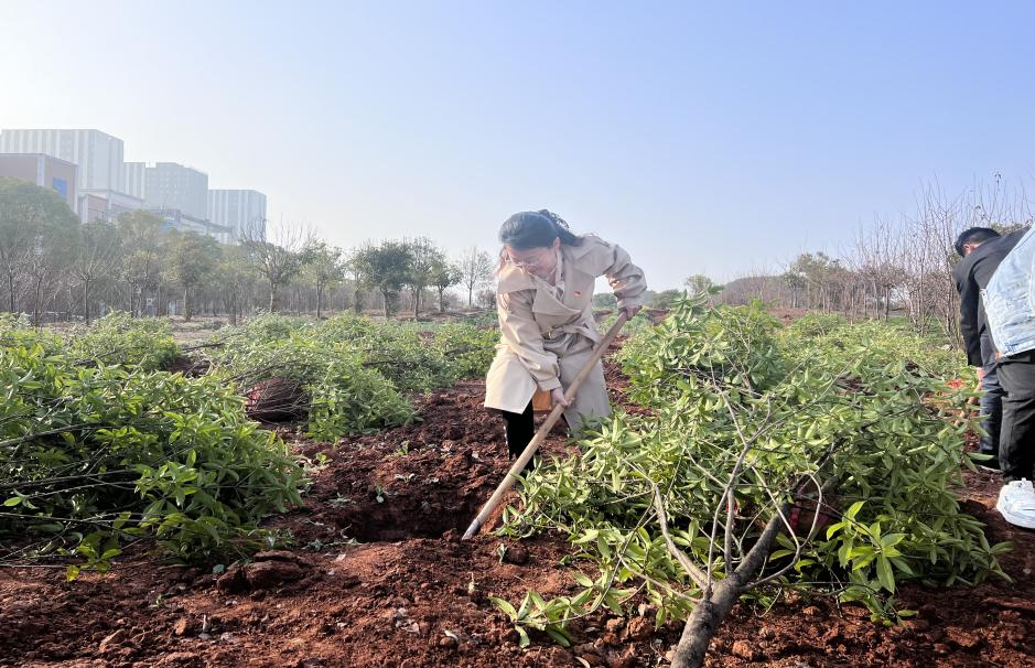 春日近,暖意馨。在活动中,众人同心万事成,在王颖书记的带领下,大家分工明确,互帮互助。温和的阳光下,志愿者们手持铁锹和水桶,全身心地投入活动中,修剪,除草,松土,施肥,浇水,大家都汗流浃背地干着,将一棵棵充满生机和希望的小树苗植入大地,劳动场面热火朝天。大家一直保持着十足的干劲,满腔的热情,享受着劳动的快乐,以团结协作精神合力栽植出一株株树苗,让活动不流于形式。大家用劳动诠释着对大自然生命的关爱,用汗水践行着对雷锋精神的传播,花草之美,美在生机灵动,养植之乐,乐在共同成长。大家用行动守护绿色,用爱心浇灌生命,每一棵树都是自然和生命的意象,每一棵树都是不朽与永恒的象征。