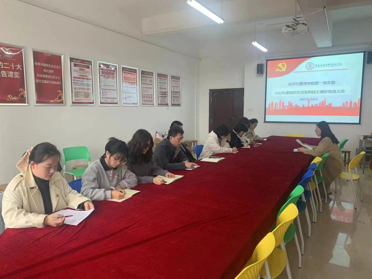 为深入学习贯彻党的二十大精神,坚持不懈用习近平新时代中国特色社会主义思想凝心铸魂,9227新葡的京集团第一党支部结合实际,于2023年3月8日在教学楼1207会议室认真召开2022年度组织生活会和民主测评党员大会。本次大会由第一党支部书记刘慧玲主持会议并讲话,参会人员共10人,请假1人。