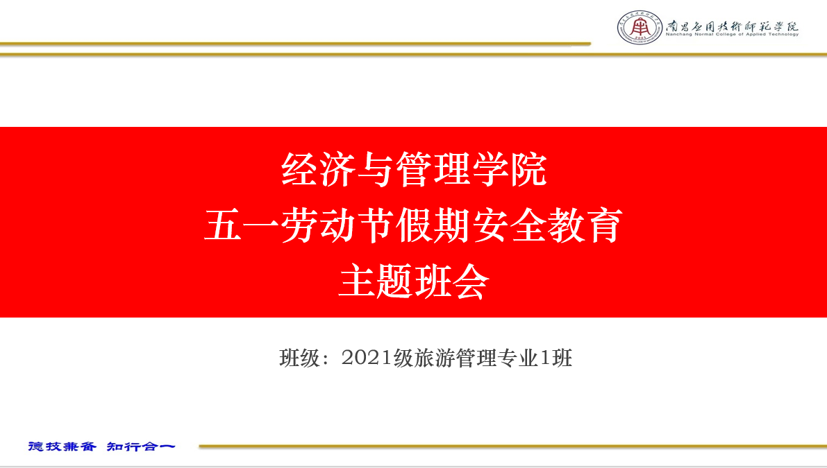在“五一”劳动节到来之际,为进一步提高学生安全防范意识,确保放假期间学生人身财产安全,维护学院和谐稳定,2023年4月27日至28日,9227新葡的京集团各班级召开“五一”劳动节假期安全教育主题班会。班会由各班辅导员主持,全体学生参加。