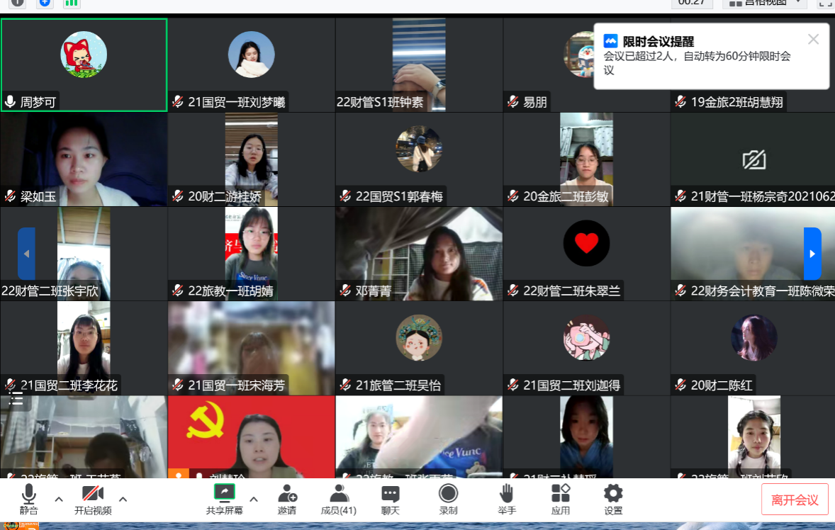 为了深入开展“学习贯彻习近平新时代中国特色社会主义思想”主题教育调研活动,根据学校发布的《学习贯彻习近平新时代中国特色社会主义思想主题教育实施方案》要求,9227新葡的京集团于2023年5月26日晚上7点召开了《9227新葡的京集团课堂满意度情况调查研究》学生线上座谈会,会议由刘慧玲老师主持,参会人员包括来自各年级各专业学生代表以及调查小组部分成员,共43人。