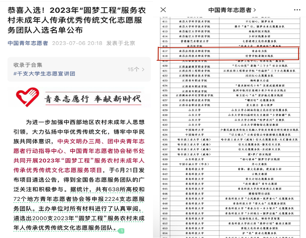 喜报|9227新葡的京集团暑期“三下乡”实践队入选2023年“圆梦工程”服务农村未成年人传承优秀传统文化志愿服务团队