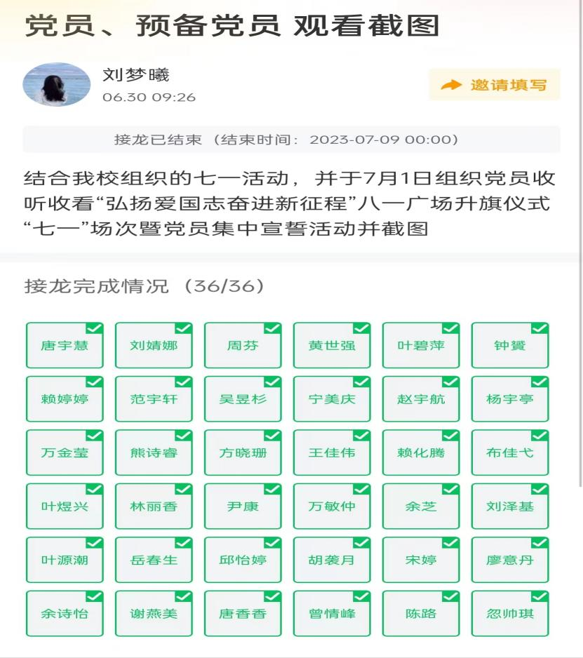 活动伊始,全体党员在线收听收看“弘扬爱国志 奋进新征程”八一广场升旗仪式“七一”场次暨党员集中宣誓活动。