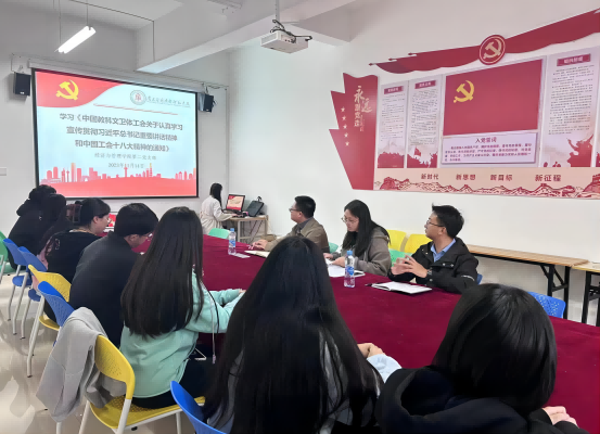 会前,万佳欣同志带领大家学习《习近平在中共中央政治局第九次集体学习时强调铸牢中华民族共同体意识推进新时代党的民族工作高质量发展》与《中国教科文卫体工会关于认真学习宣传贯彻习近平总书记重要讲话精神和中国工会十八大精神的通知》,强调各民族是休戚与共、荣辱与共的命运共同体,要讲好中华民族共同体故事,铸牢中华民族共同体意识。