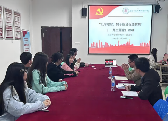2023年11月14日,我院第二党支部成功开展了以“以学增智,实干担当促进发展”为主题的党日活动。本次活动旨在提高全体党员政治素养和专业能力,强化实践锻炼和工作担当,推动工作落实和发展进步。