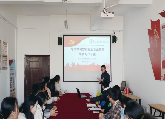 会议开始,冉迦葆同志领学《毛泽东同志的独立自主思想及其时代价值》,号召全体党员任何时候都必须把独立自主、自力更生作为自己发展的根本基点,任何时候都要坚持中国人民自己选择的社会制度和发展道路,始终把国家主权和安全放在第一位,坚决维护国家主权、安全、发展利益,坚持中国的事情按照中国的情况来办、依靠中国人民自己的力量来办。