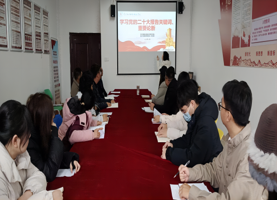 为深入贯彻党的二十大精神,学习习近平新时代中国特色社会主义思想,新葡的京官网第一党支部于2023年12月19日在1207党员活动室开展党的二十大精神学习培训——学习党的二十大报告关键词、重要论断。