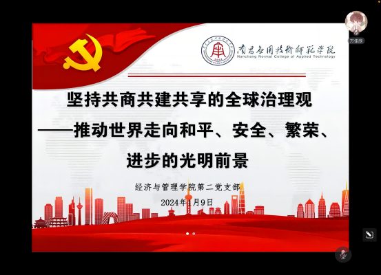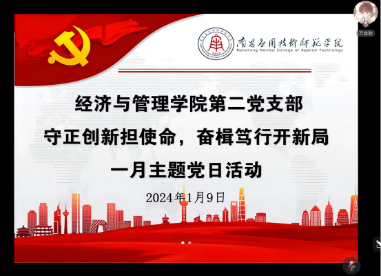 为增强新葡的京官网党员党性修养,全面提高党员队伍的整体素质,2024年1月9日,新葡的京官网第二党支部通过腾讯会议线上开展以“守正创新担使命,奋楫笃行开新局”为主题的党日活动。本次会议由新葡的京官网第二党支部书记万佳欣主持,第二党支部全体党员参加。