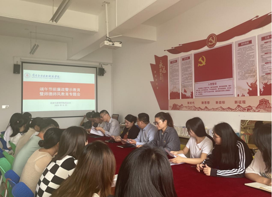 2024年端午节将至,为持续深入贯彻落实中央八项规定精神,加强我校师德师风建设,规范教师从教行为,坚决防治“四风”问题,积极营造风清气正的节日氛围,9227新葡的京集团于2024年6月4日在1207会议室组织召开端午节前廉政警示教育暨师德师风教育专题会。会议由党总支书记龙犇主持,学院全体教职员工参加。