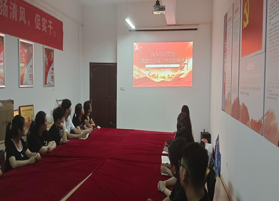 为深入学习贯彻党的二十届三中全会精神,凝心聚力抓好全会精神的贯彻落实,深化爱党爱国爱社会主义教育。2024年9月24日,我院第二党支部书记万佳欣在1407党员活动室为支部党员讲授了一场主题为《深入学习贯彻党的二十届三中全会精神》的专题党课。