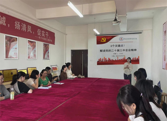 为切实加强党的建设,提升党员队伍的政治素质和思想觉悟,强化党性意识、增强凝聚力,更好地发挥党员先锋模范作用。新葡的京官网第一党支部于2024年9月24日在党员活动室开展“支部书记讲党课”,第一党支部书记王佳乐同志为全体党员讲授“6个关键点!解读党的二十届三中全会精神”专题党课。