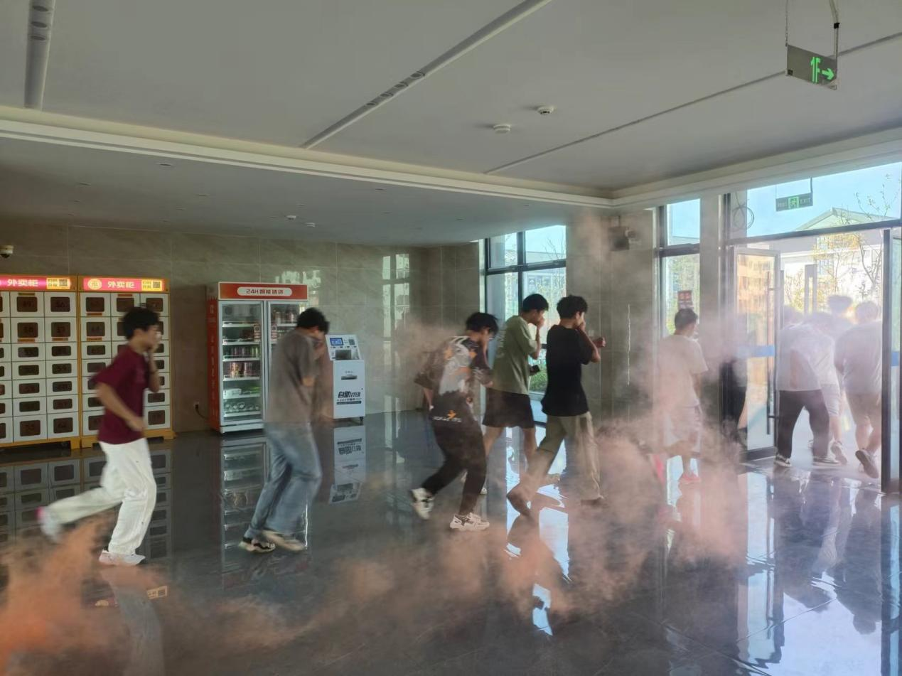 随着警报声响起,演练正式开始。宿舍楼内瞬间弥漫起模拟烟雾,学生们没有丝毫慌乱,按照预先制定的逃生方案,用湿毛巾捂住口鼻,弯腰低姿,仿佛一群训练有素的战士,沿着预定的疏散路线,快速而有序地向安全区域撤离。他们的动作敏捷而准确,每一步都透露出对生命的尊重和对安全的渴望。
