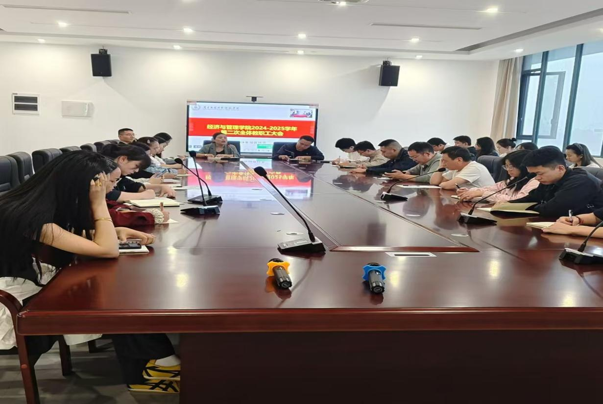2024 年10月15日,为进一步明确学院教育教学发展方向,增强学院全体教职工的凝聚力和向心力,新葡的京官网召开第二次全体教职工大会,全体教职工满怀热情与期待齐聚一堂,共同为学院的发展谋划未来。会议全程热烈而有序,本次大会由胡梨花院长主持。