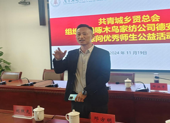 2024 年11月19日,共青城乡贤总会积极牵线搭桥,促成香港啄木鸟家纺公司德安分公司的爱心捐赠慰问活动在我院顺利举行。共青城乡贤总会代表门立志与香港啄木鸟家访公司德安分公司总经理邓方明一同出席,院领导及师生代表参加活动,活动由院长胡梨花主持。