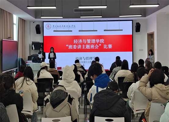 本次比赛共有来自经管学院的13个班级参加,各班班委精心准备,围绕环保意识、心理健康、网络安全、时间管理等多个主题,展示了各具特色的班会活动。比赛现场,各班班委充分展示了他们的组织协调能力和演讲技巧。他们通过PPT、视频等多种形式,生动形象地呈现了班会的主题和内容。班会内容丰富,既有理论讲解,又有互动环节,让同学们在轻松愉快的氛围中收获知识。