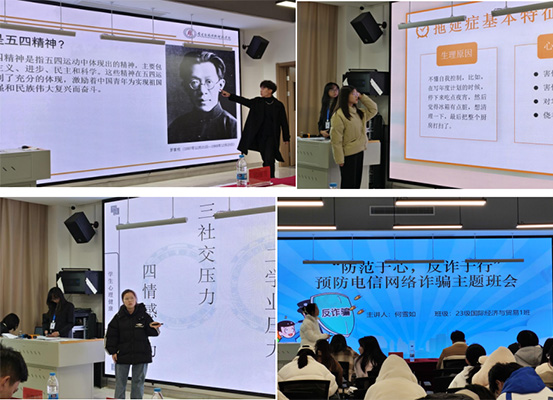 本次比赛共有来自经管学院的13个班级参加,各班班委精心准备,围绕环保意识、心理健康、网络安全、时间管理等多个主题,展示了各具特色的班会活动。比赛现场,各班班委充分展示了他们的组织协调能力和演讲技巧。他们通过PPT、视频等多种形式,生动形象地呈现了班会的主题和内容。班会内容丰富,既有理论讲解,又有互动环节,让同学们在轻松愉快的氛围中收获知识。