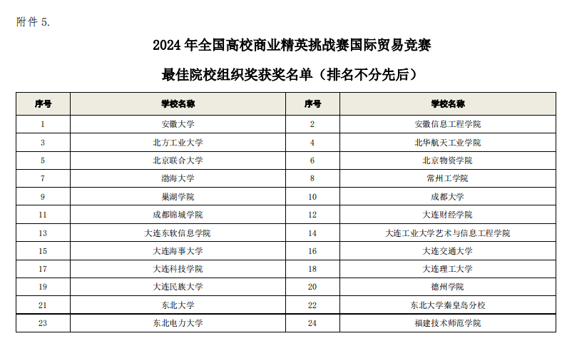 热烈祝贺我校9227新葡的京集团国际商贸系学生在2024年全国高校商业精英挑战赛国际贸易竞赛中勇创佳绩! 在本次大赛中,我校学子凭借扎实深厚的专业知识和卓越非凡的实践能力,于众多强劲的参赛队伍中崭露头角,一举斩获7个奖项,其中RCEP国际市场开拓策划赛道获本科组一等奖1项、三等奖1项,专科组三等奖1项;国际贸易与商务专题赛道获本科组二等奖1项; 技术性贸易措施评议赛道获本科组二等奖2项、三等奖1项。同时,我校获最佳院校组织奖。