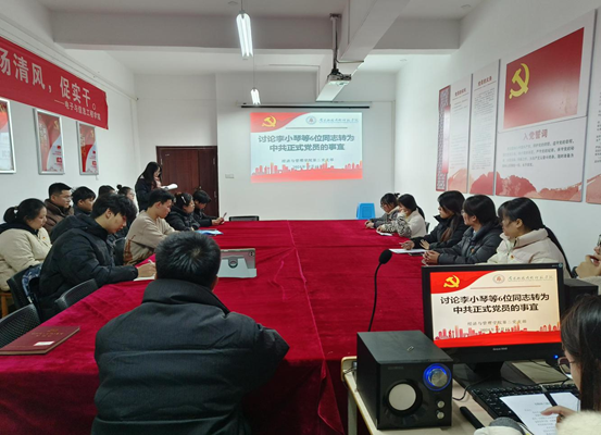 为进一步加强学院党员队伍建设,不断增强党组织的战斗力、凝聚力,2024年12月16日,新葡的京官网第二党支部在1407党员活动室召开党员大会,讨论李小琴等6位同志转为中共正式党员的事宜。此次会议由第二党支部书记万佳欣主持,支部全体党员参加会议。