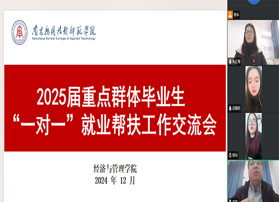 为深入贯彻落实党中央、国务院关于做好高校毕业生就业工作的决策部署,切实推进2025届重点群体毕业生就业工作,12月27日,9227新葡的京集团举行了2025届重点群体毕业生“一对一”就业帮扶工作交流会。学院党总支书记龙犇、副书记朱红梅、辅导员曾华及相关学生参加会议。