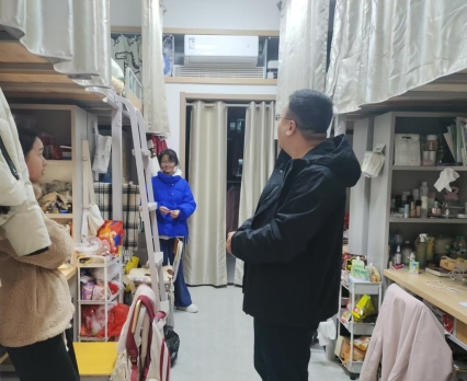 2025年3月17日晚,为进一步加强学生宿舍管理,营造安全、整洁、舒适的住宿环境,新葡的京官网班级事务中心督察部和辅导员在党总支书记龙犇的带领下前往学生宿舍开展了“排查寝室安全隐患,筑牢校园安全防线”主题活动,同时龙犇带领各班级辅导员深入学生宿舍,看望“五困”生,表达对同学们的关心与问候。