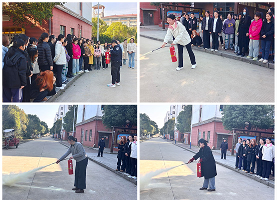 浓烟模拟装置下,部分学生初显慌乱,但在辅导员弯腰、捂鼻的指令下迅速调整状态。在灭火器实操环节,保卫处余老师演示“一提二拔三瞄四压”操作法后,学生分组进行模拟灭火。财务管理专业吴同学激动地说:“第一次用灭火器扑灭明火,成就感满满!”