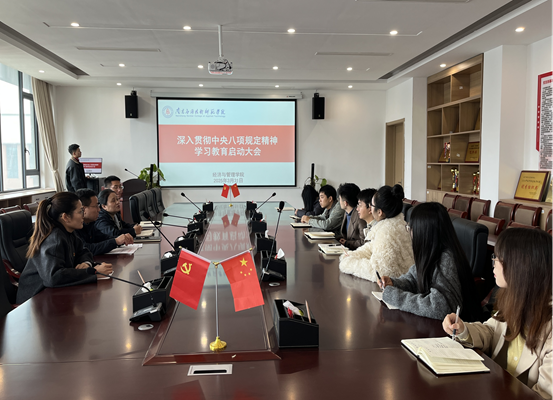 为进一步加强党的作风建设,深入贯彻中央八项规定精神,2025年3月31日,新葡的京官网在沁苑八实506党员活动室召开深入贯彻中央八项规定精神学习教育启动大会,本次会议由学院党总支书记龙犇主持,学院党总支委员及科级以上干部参加会议。