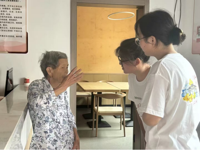 随后,志愿者们走进当地养老院,一到养老院,志愿者们便迅速行动起来,陪老人们聊天,耐心倾听老人们讲述年轻时的奋斗故事,从艰苦岁月里的拼搏经历到时代变迁中的人生感悟,在真诚的对话中感受岁月沉淀的智慧。